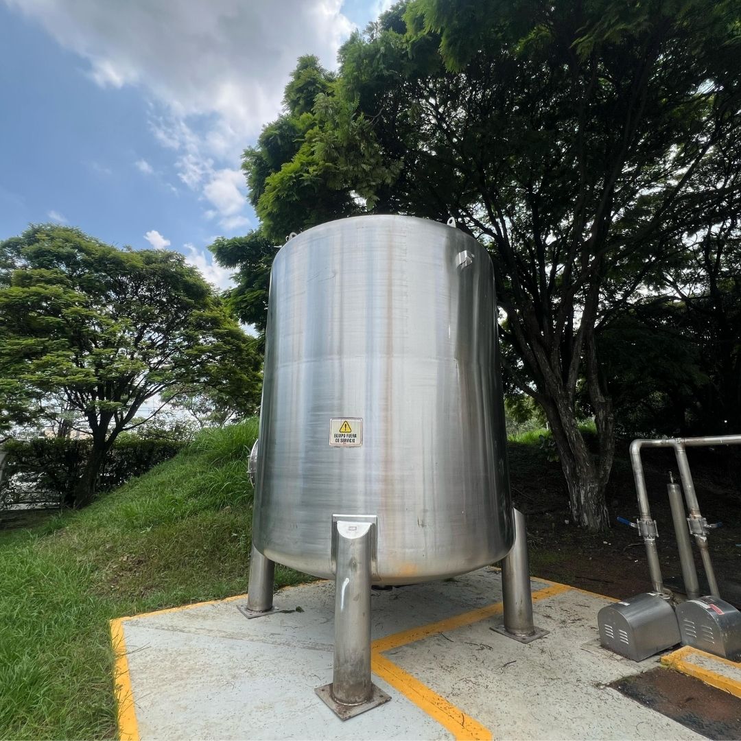 Este tanque de 4 toneladas se ubico en la Planta de Tratamiento de Agua Residual PTAR, sobre la placa de concreto MR 41 construida en la primera fase del proyecto.