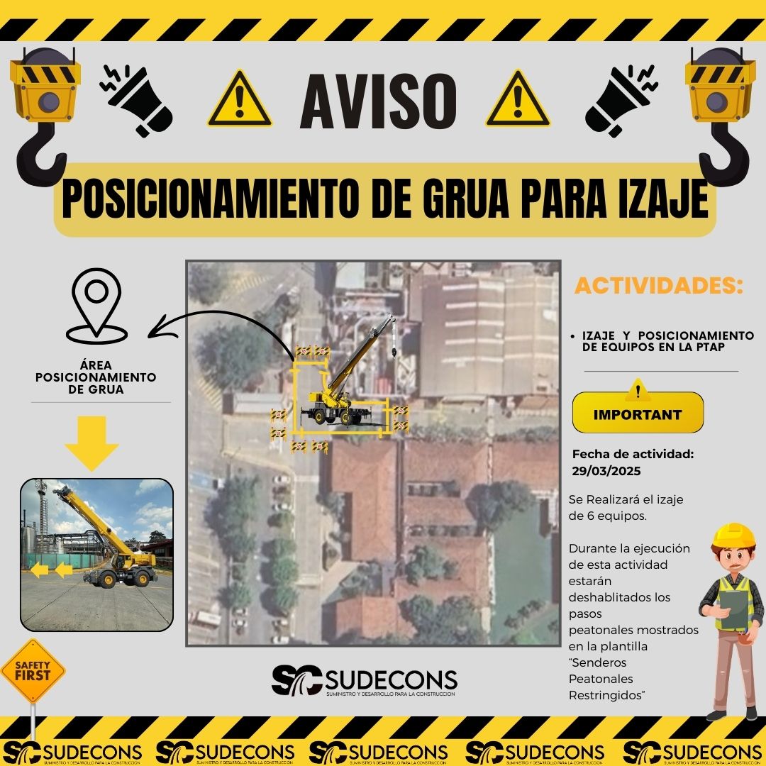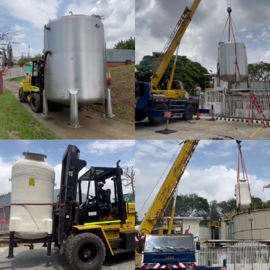 La fase 2 del proyecto de aguas renovadas en la panta de Coca Cola Cali, consistió en la ejecución de izajes para el transporte y ubicación final de equipos y elementos ( Osmosis, tanques, filtros, etc) necesarios para la continuación del proyecto.